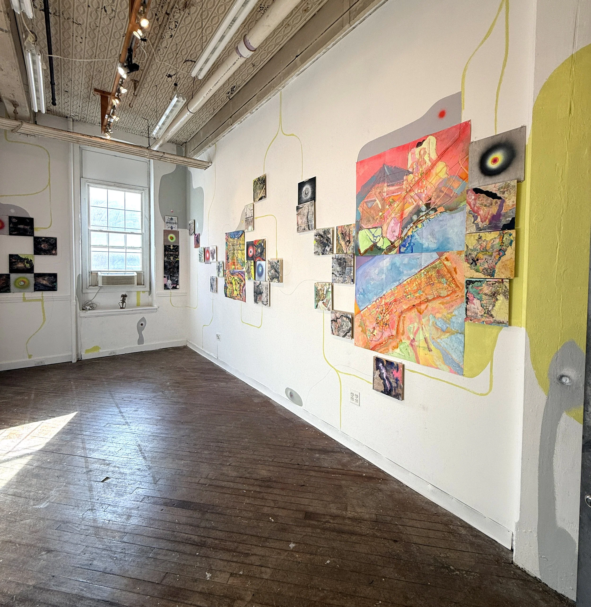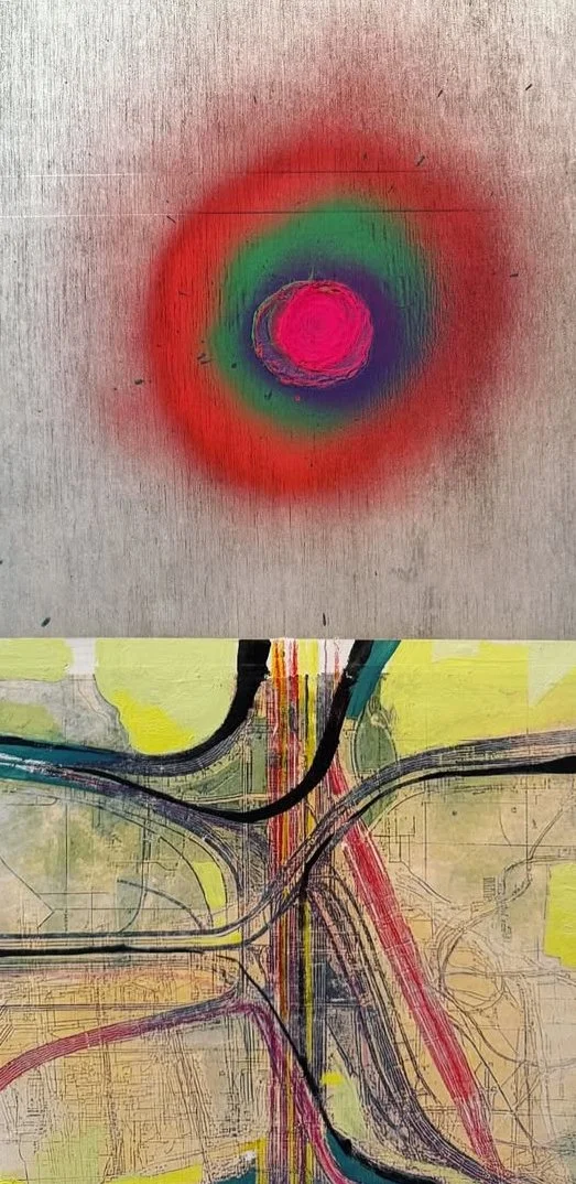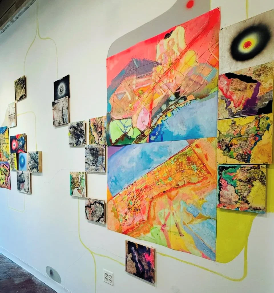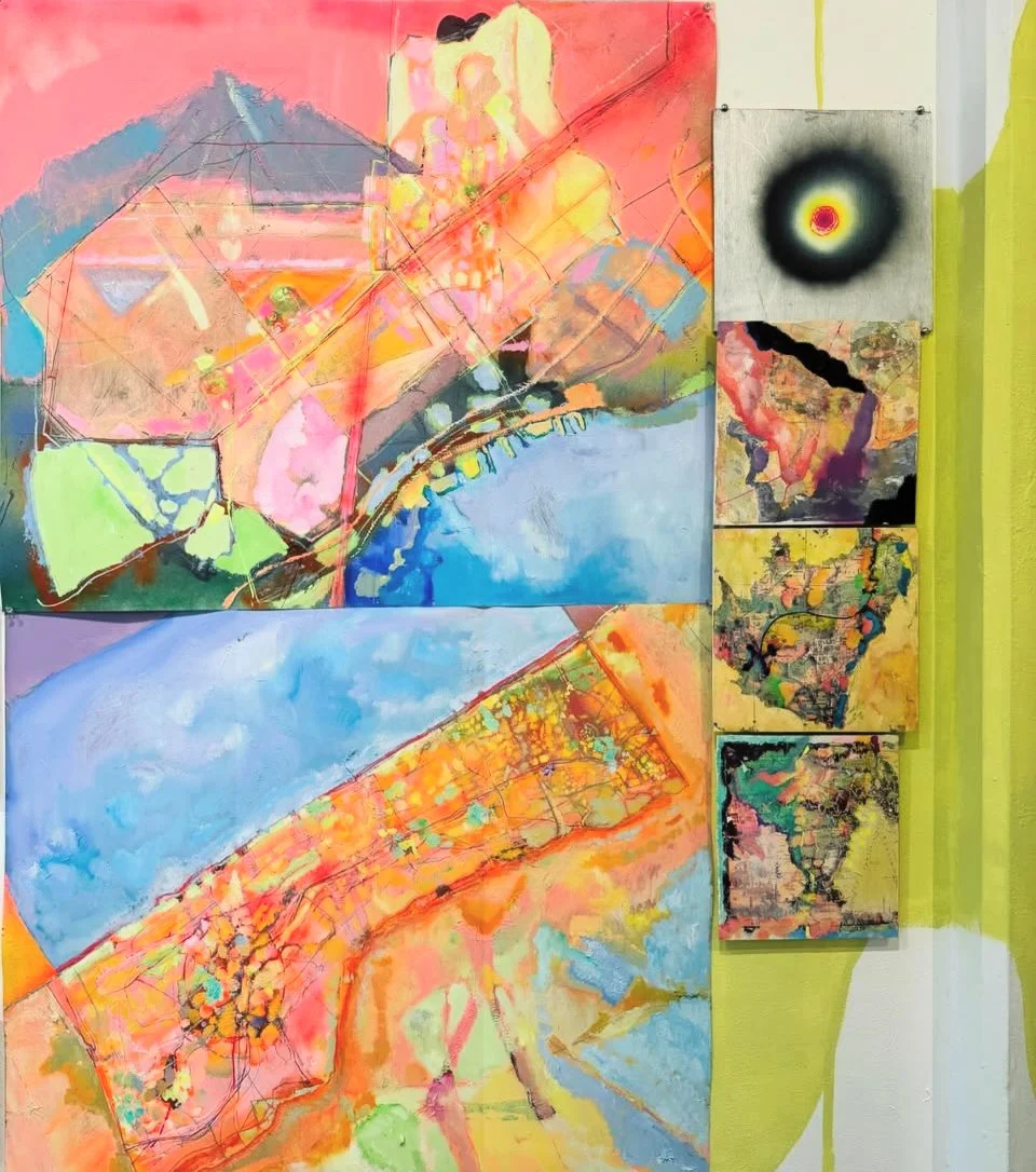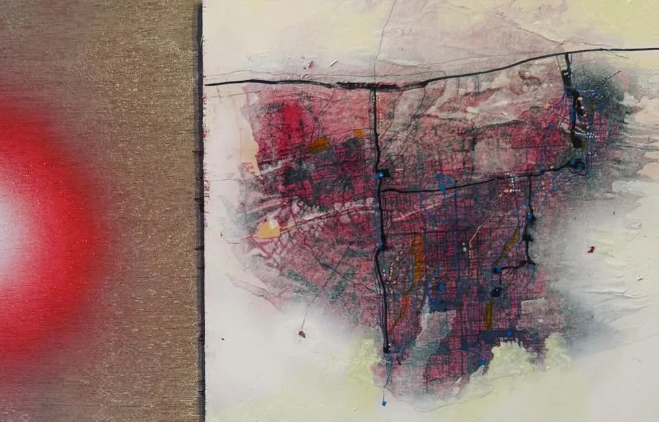 Exploring the ever-fluid and constantly evolving relationship between place, movement, identity, and migration through the lens of parabolic design, soft-machine learning, cartography and sacred geometry, this body of work is rooted in remembrance of place. Maps - symbols of fixed borders and defined space - become a malleable form, reshaped through memory, dream, omission, embellishments, gerrymandering, Ai iterations, and ideographic notation.